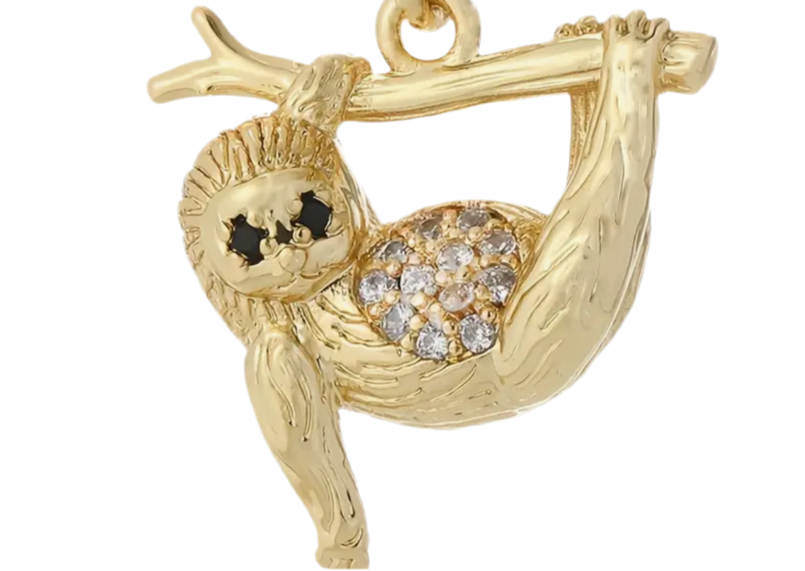 Cutest little 14k gold plated baby sloth. Adorable crystal details adorn this cutie.