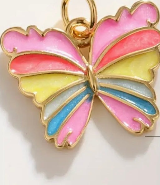 Bright and Happy enamel butterfly charm measures 15 x 12 mm.