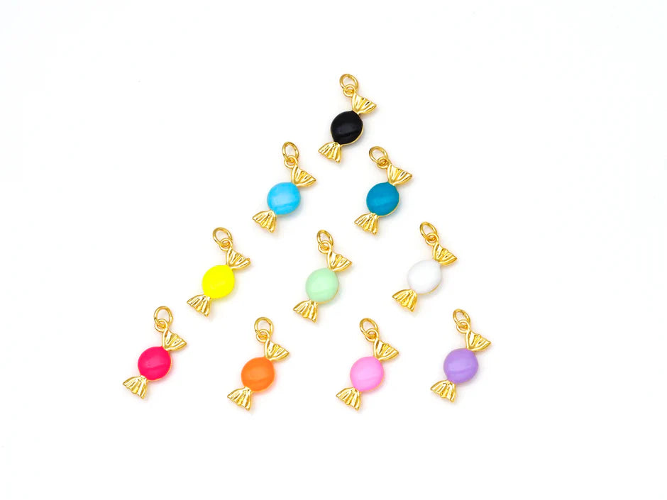 Our adorable enamel pieces of candy are perfectly sweet and a fan favorite. Available in a variety of colors and measure 18 x 8 mm.