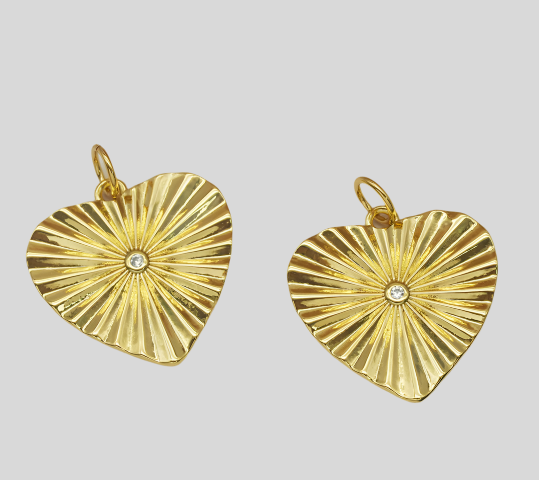 This heart pendant is a show stopper. Super fine detailing with a cz center. Gold Plated and measures 18 x 18.3 mm.