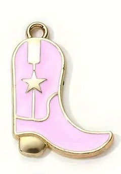 Cowboy boot charm in Pink, Black, Red and Purple with gold trim. VERY popular on the site.