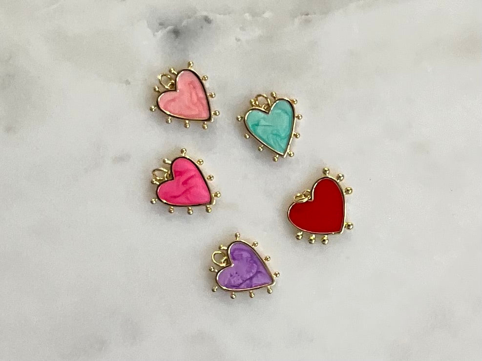 These are one of our best sellers. Adorable on any necklace or bracelet. The red measures 17mm x 22mm, all other colors measure 18mm x 19mm.