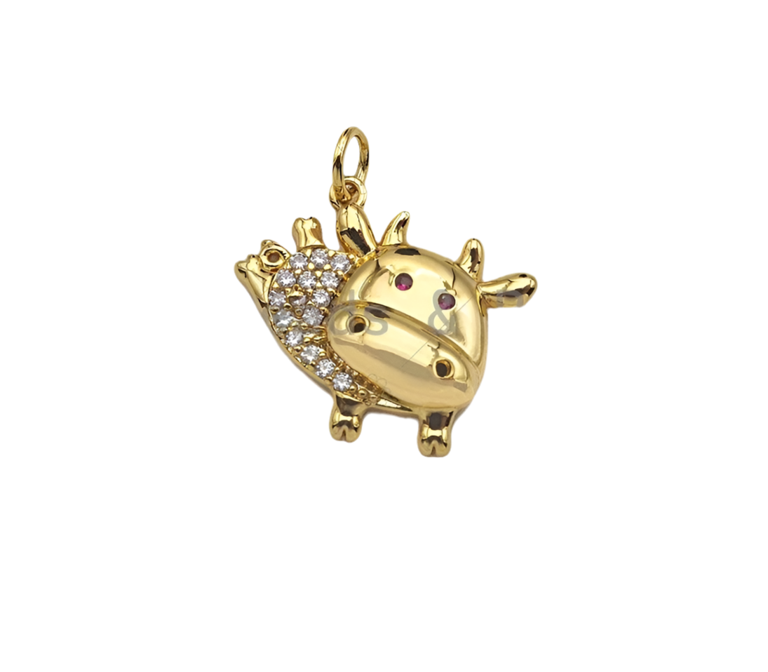 Silly and Fun Flying Cow with great CZ detail. 18k Gold Plating over Copper and measures 13 x 15.2 mm.
