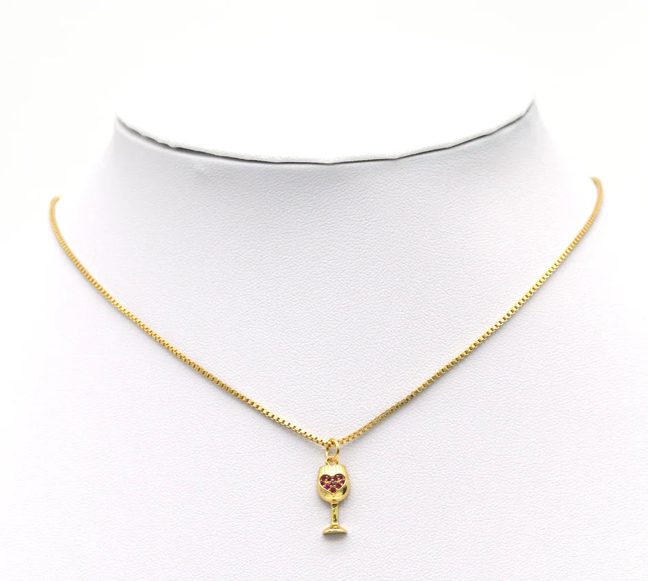 Cutest little glass of wine with cz heart detail. 14k gold plated and measures 7 x 16 mm.