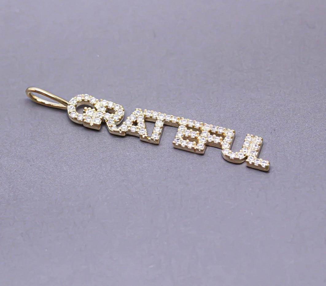Our beautiful GRATEFUL pendant with CZ crystals.