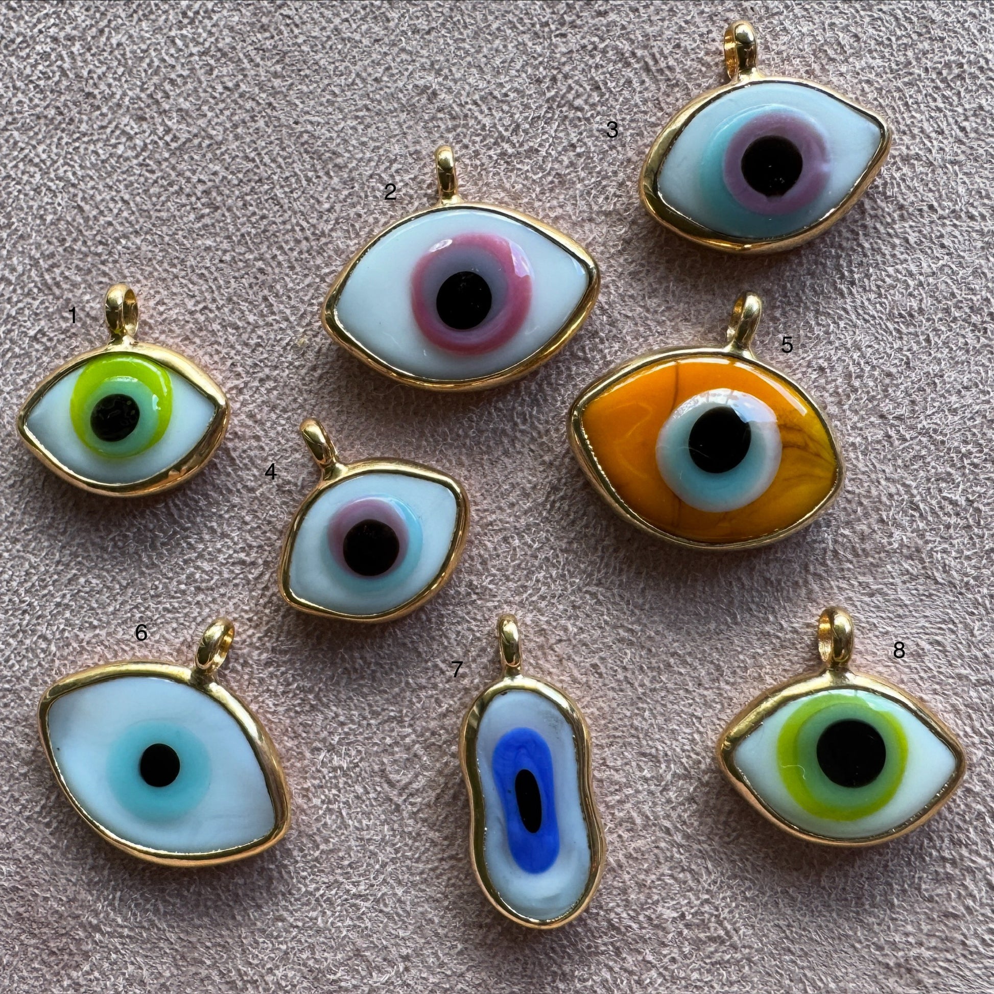 These hand crafted glass eye charms are One of One and created and sourced from Caracas, Venezuela. They’re incredible and so unique.