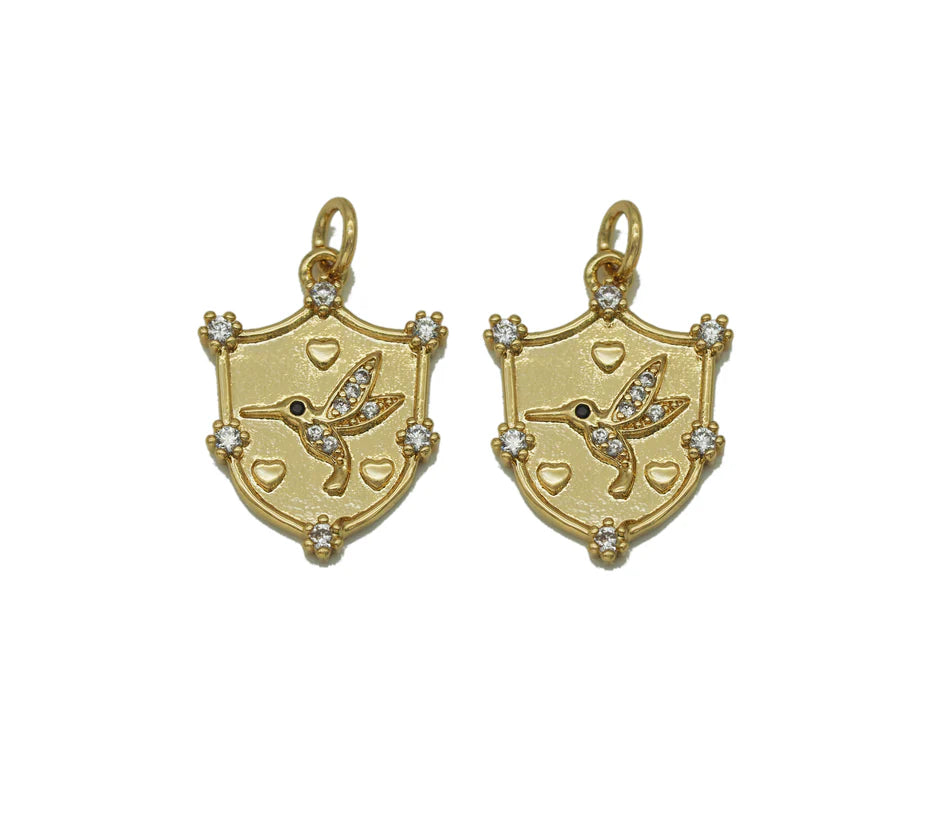 This is a beautiful charm of a hummingbird with a few crystals to add some sparkle. With the shield like details, she is beautiful.