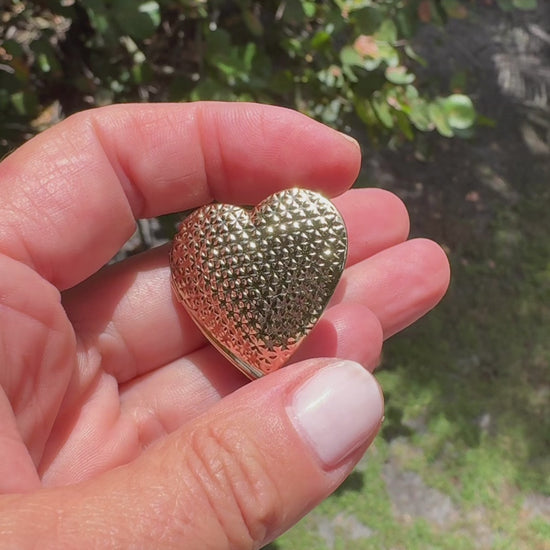 This locket is the largest in our selection and one of our most popular. Wonderful front detailing and makes a statement on a longer chain. Done in 14k gold plating over brass.