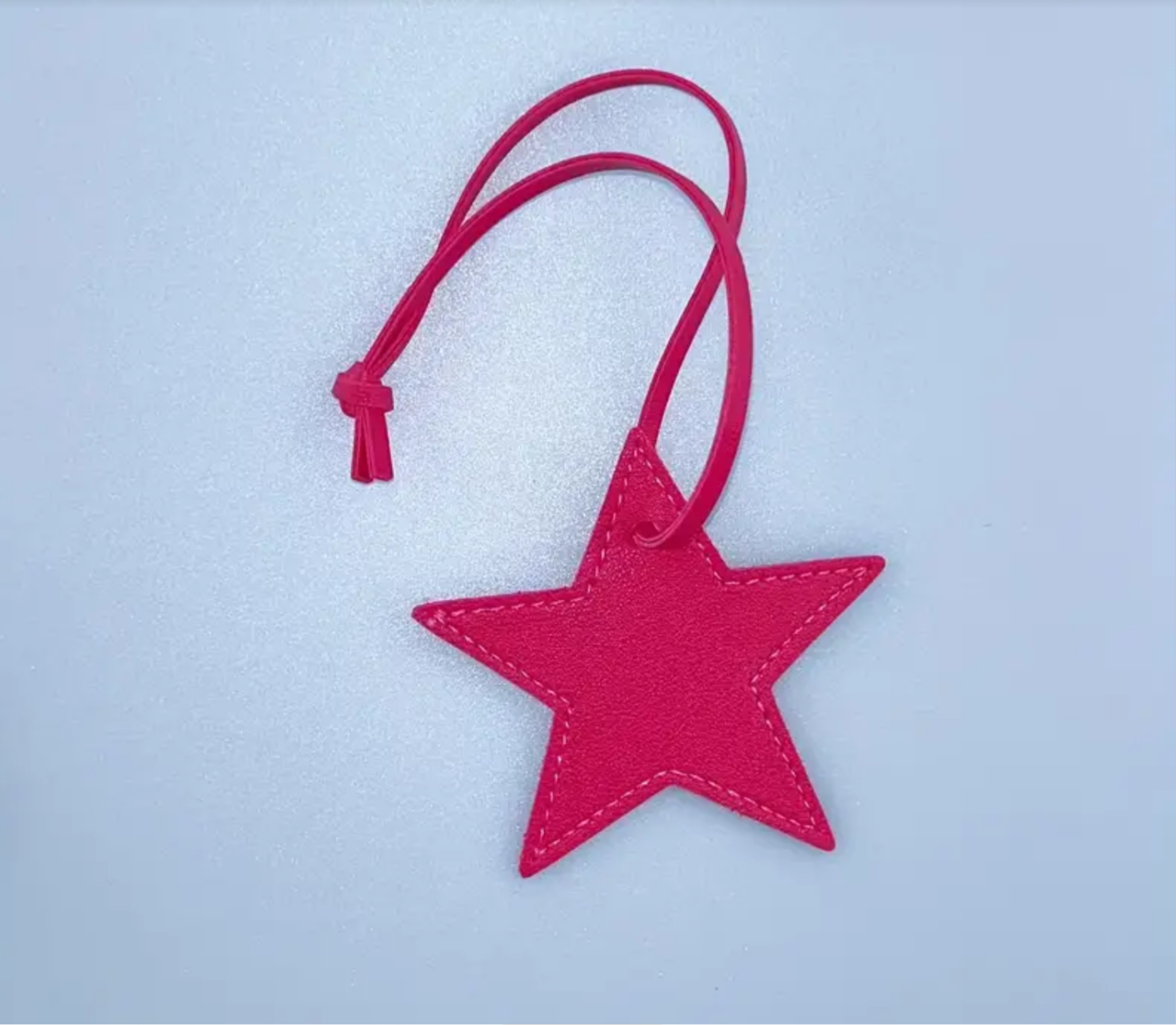 Leather Star Bag Charm. Measures 3 x 3 inches.