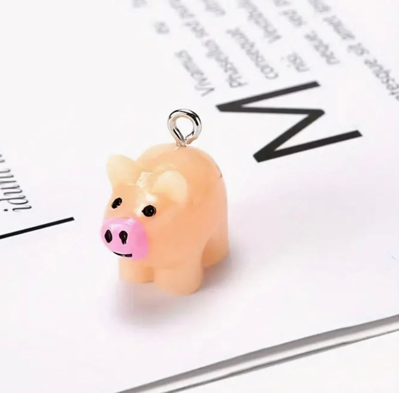 Our little mini pig measures .39 x .74 inches and comes with a silver lobster clasp attached.