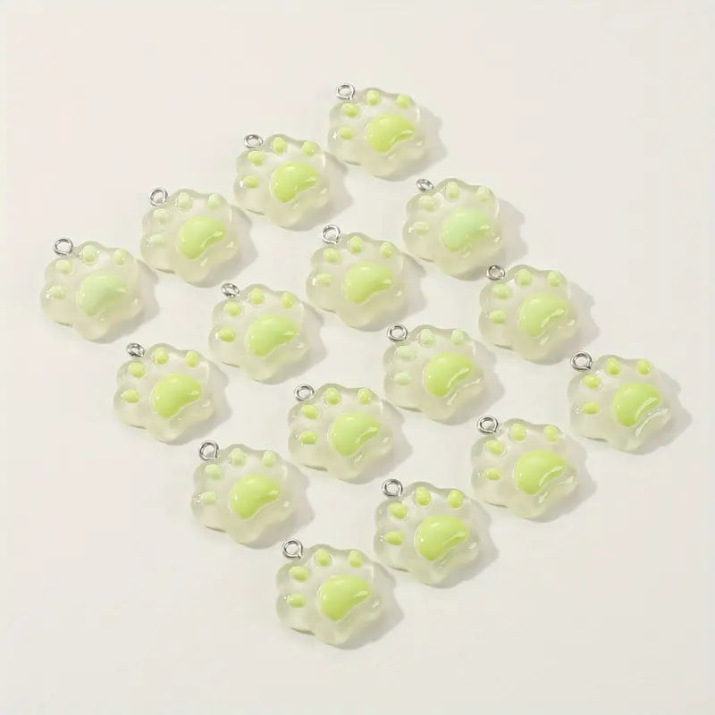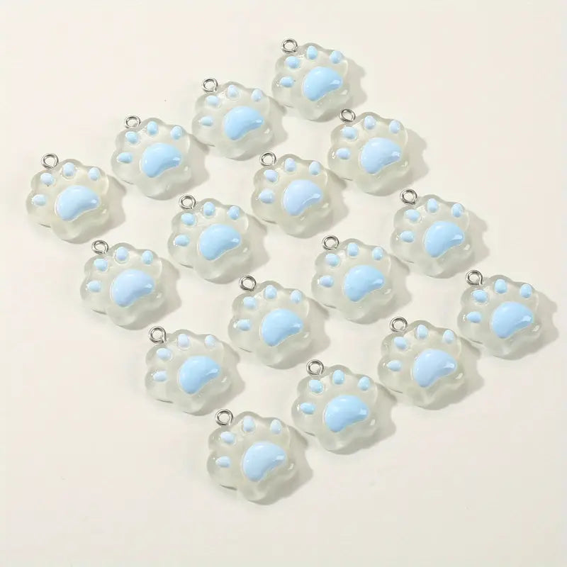 Cutest clear resin paw charms done in pastel colors and finished with a silver lobster claps.