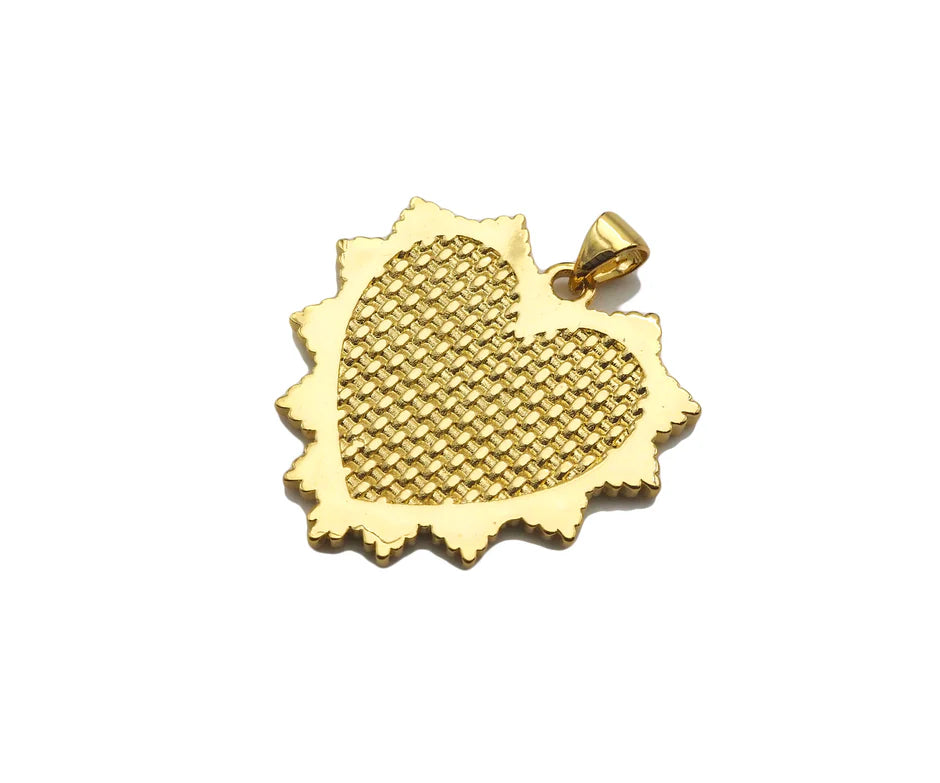 Our Patchwork Heart is a great centerpiece on any charm necklace or worn along. She is gold plated and measures 29 x 29.4 mm.