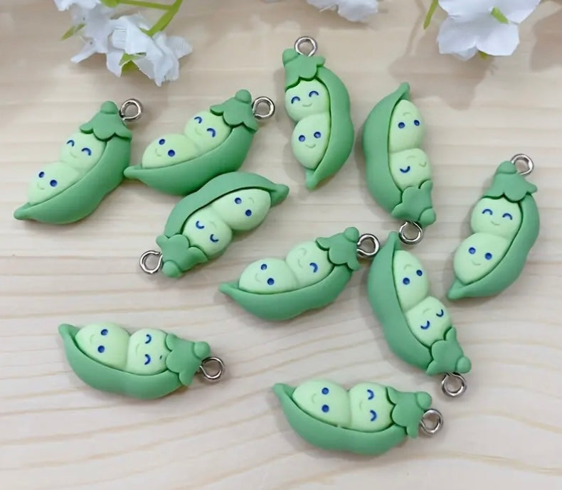 Adorable peas in a pod resin charm finished with a silver lobster clasp.