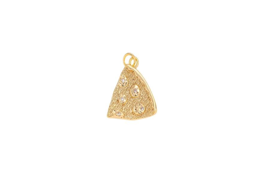 Our 14k gold plated slice of pizza. Measures 18 x 19mm. So fun.
