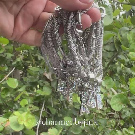 Now on SALE. Silver slinky bracelet with lobster clasp for all your Charmed by JMK charms! Each bracelet comes with one unicorn crystal alphabet charm of your choice.