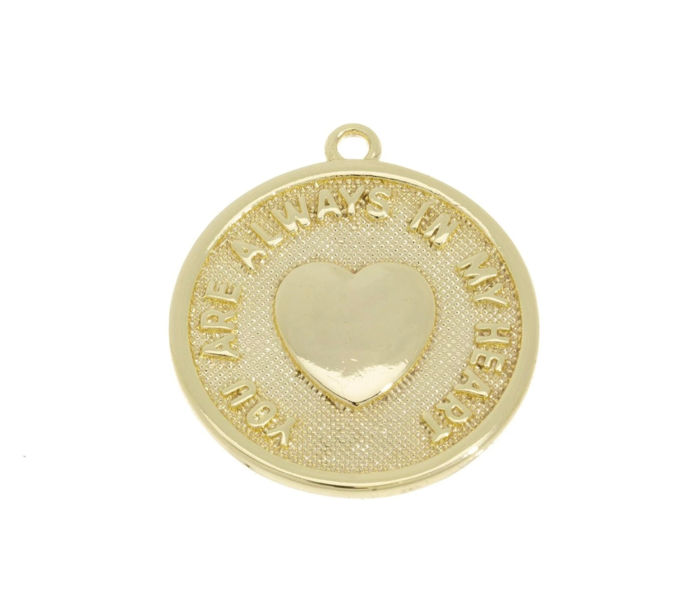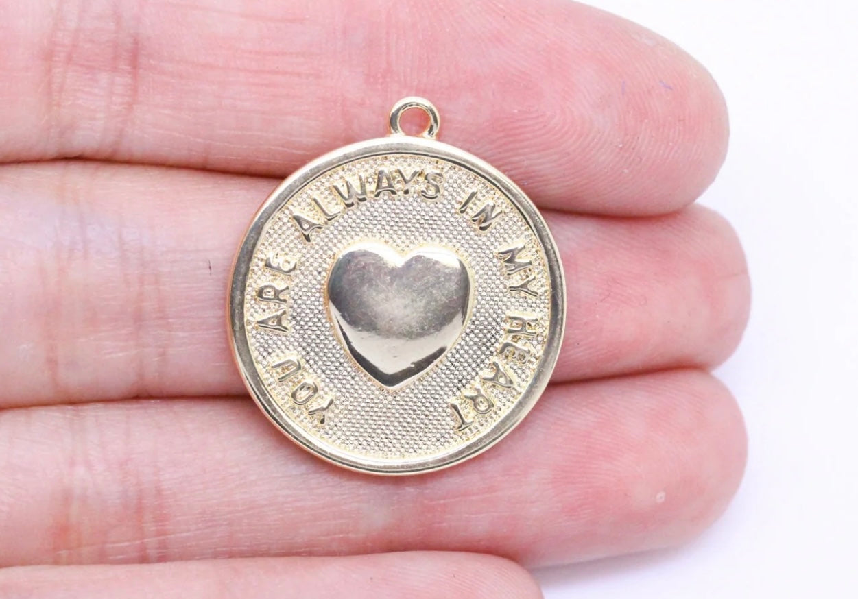 Very nice quality Gold Plated Pendant “You are always in my heart”. This pendant makes a great gift. Measures 22mm.